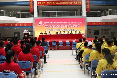 黄文福部长、郭宏图主任共同为本次夏令营授旗,施文诞会长、庄丽华会长以及营员代表上台接旗。随后,黄文福部长宣布夏令营开营。紧接着,《闽南木偶趣》、《我唱大风歌》、《晋江人的诉说》、《晋江美食来相邀》、《我的中国心》、《让爱传出去》等文艺演出随之上演。当天,全体夏令营营员们还与结对子同学完成了巧解手绳、坐地起身、彩绘T恤等活动。
