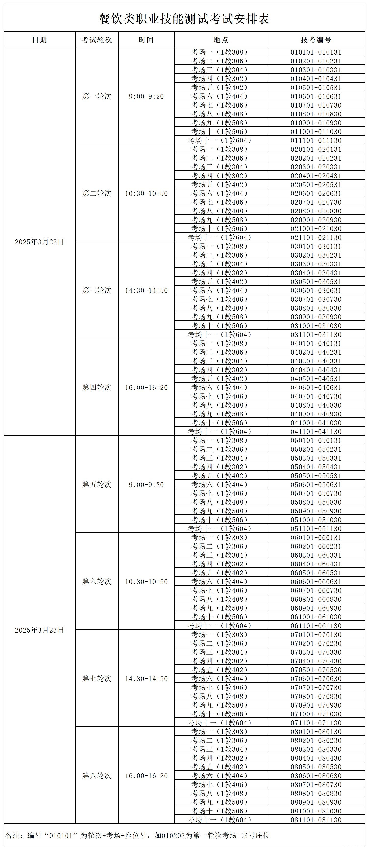 2025年福建省高职院校分类考试餐饮类职业技能测试考试安排表