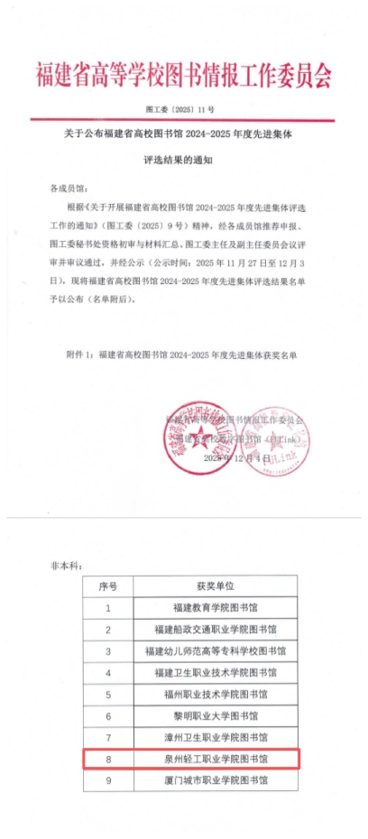 喜报!hth·华体育登录官网版下载图书馆获评“ 福建省高校图书馆2024-2025年度先进集体”